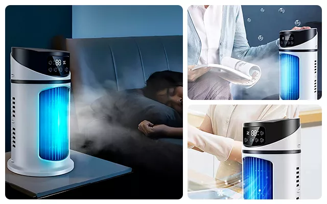 Enjoy cool, fresh air wherever you are, every day. The Ortorex Humidifier Fan quickly lowers the temperature and brings relief. Its compact build fits perfectly on any table or desk.