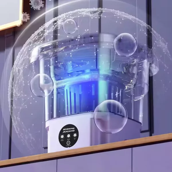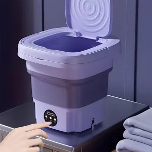 This washing machine folds down easily, saving you space and allowing for transportation. Thanks to the built-in handle, you can comfortably carry it around.