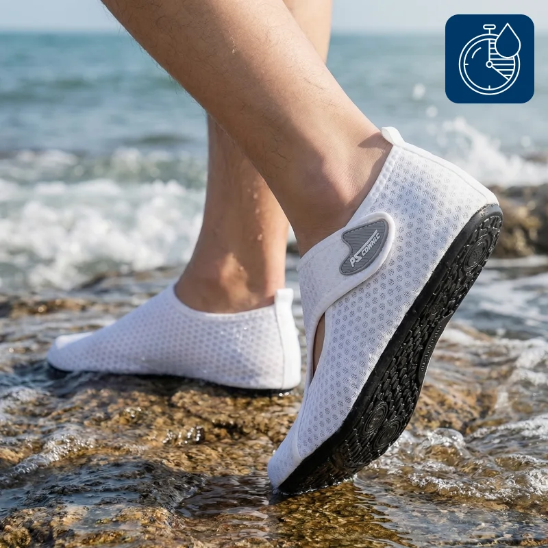 Special soles stop unwanted sliding on rocks or wet tiles. Feel safe wherever you step, from poolside to seaside.