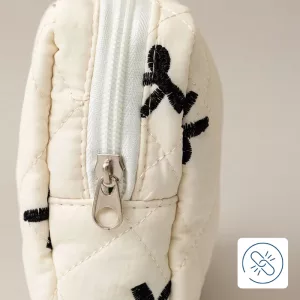 I bring my pouch everywhere, even to sleepovers. The material wipes clean in seconds, so it’s always ready to use again.