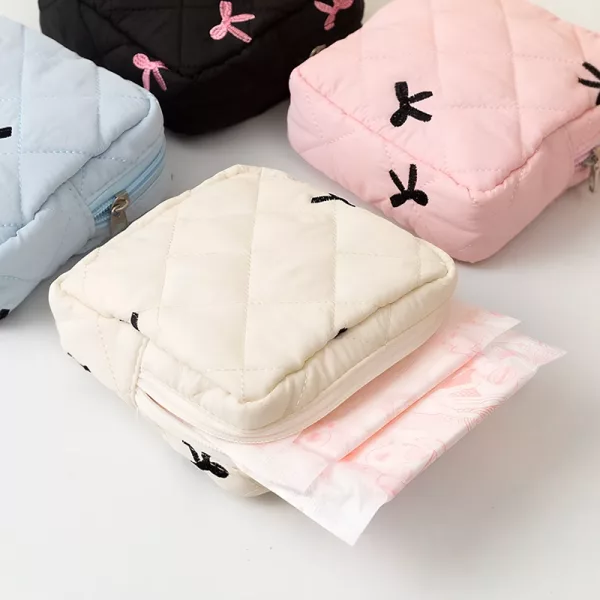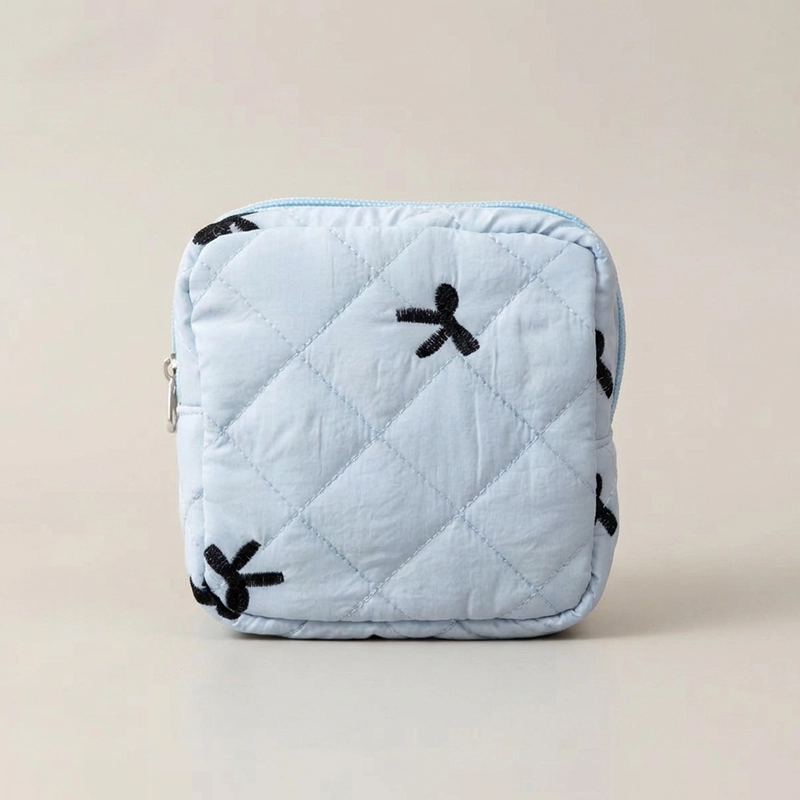 I always keep my blue pouch with me. It fits pads, liners, and even a small pack of tissues. Really makes my school days easier.