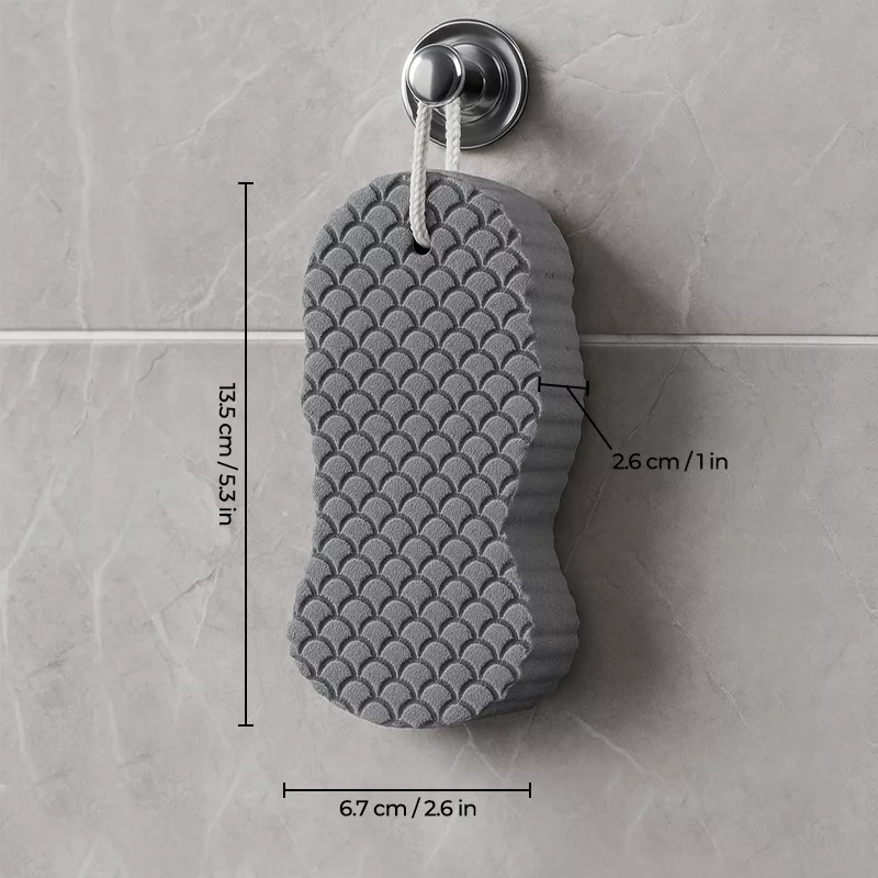 Really helps get rid of dry flakes on my back. The sponge feels squishy but does the job. I’m impressed at how fast it dries.