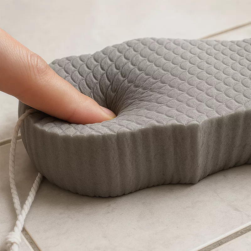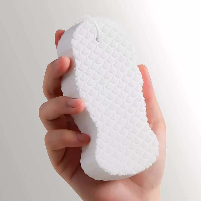 My skin always feels super smooth after using this wash sponge. Holding it is easy, even for my grandma. Doesn’t tear up easily.