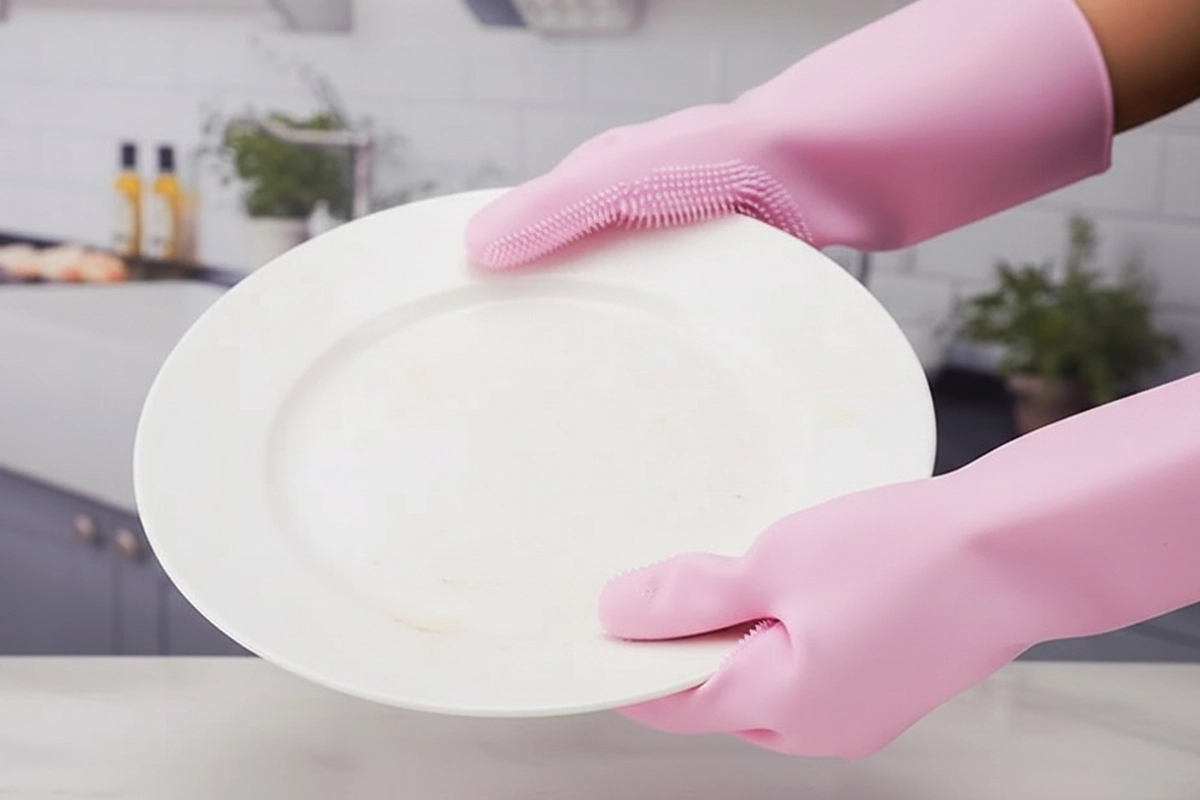 Great for not only dishes but also cleaning the sink and bathroom tiles. The gloves rinse clean really well.