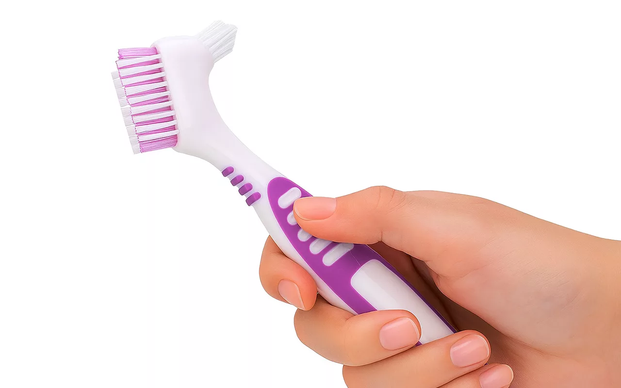 This tool fits just right in my hand and makes cleaning fast. I like the dual brush ends for getting everywhere, and it feels gentle on my dentures.