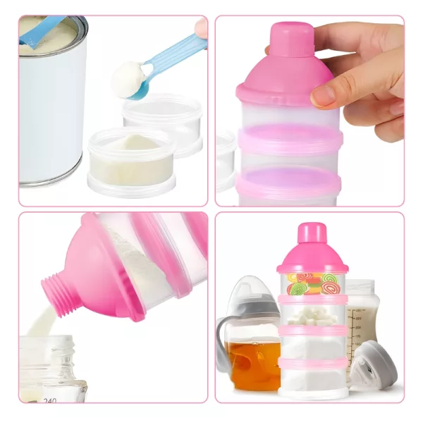 All the compartments twist and lock together, saving space in your diaper bag. They are great for long outings or overnight stays.