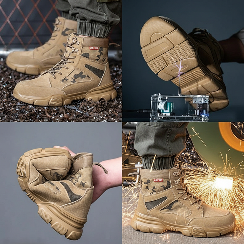 Reinforced steel guards against sharp drops or crushing impacts. Strong sole resists punctures from nails or debris with ease.