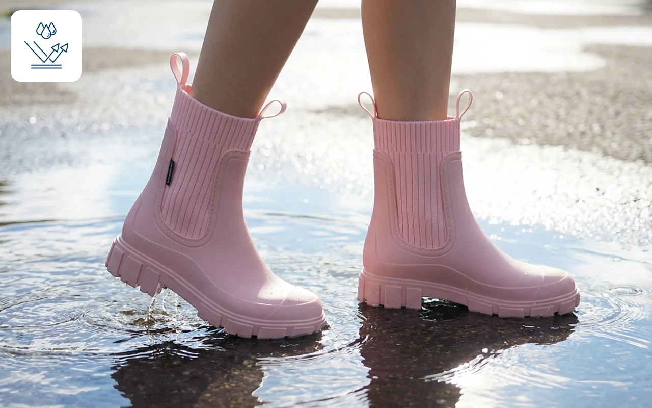Love how these boots never slip on wet floors. I wore them around town and felt stable the entire day, even on shiny tiles and sidewalks.