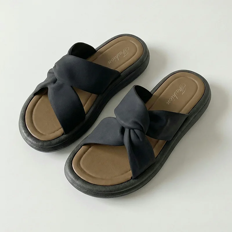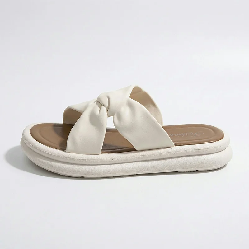 Bought these sandals for weekend errands and beach walks. They slip on fast, cushion my heels nicely, and the cute knot detail makes outfits feel a bit dressier.