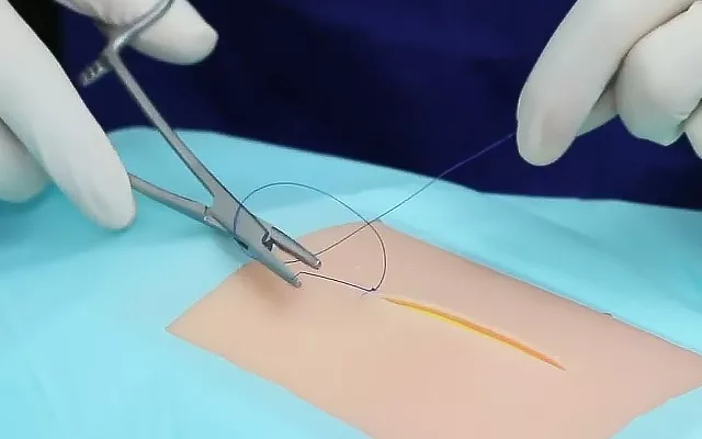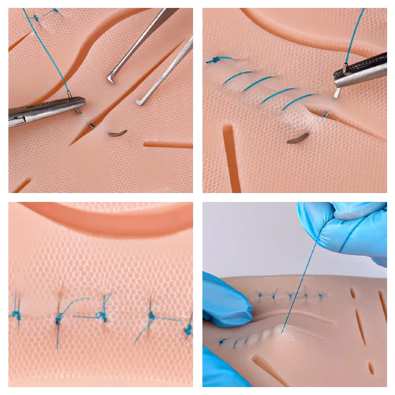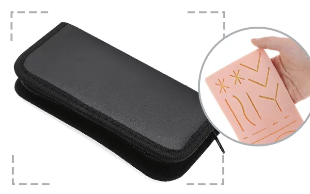 The pad mimics real human tissue, offering skin, fat, and muscle layers. Practice various techniques on different wound types for comprehensive learning.