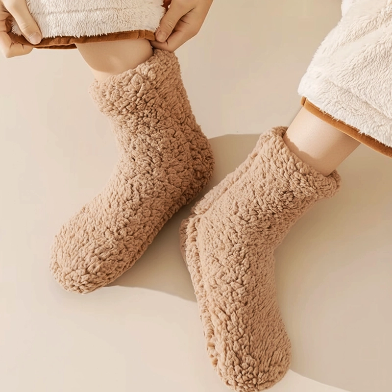 Thick plush fabric locks in heat for lasting comfort. Feet remain snug and protected even on the coldest mornings.
