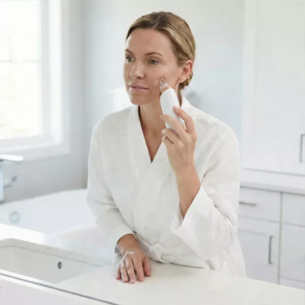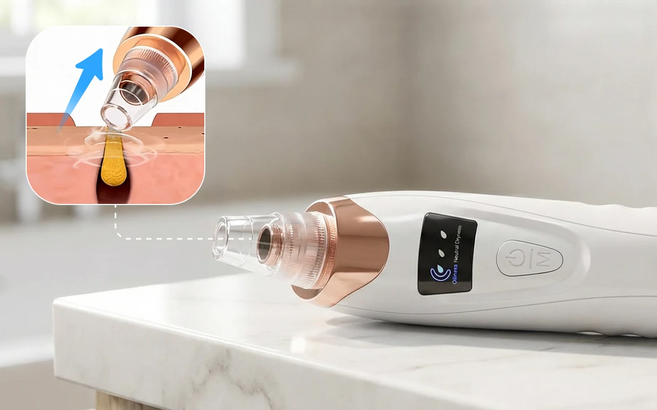 This little suction device is so easy to use. I like picking the strength I need depending on what part of my face I clean. No pain, just clearer skin.