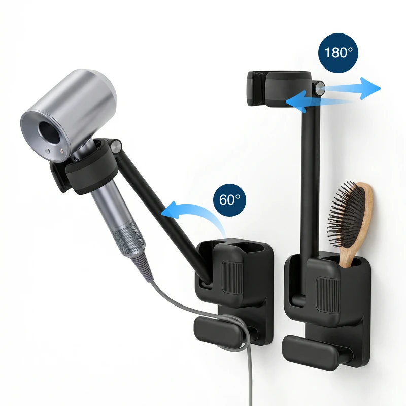 Compatible with different hair dryer sizes for hassle-free use. Easily switch devices without worrying about matching holders.
