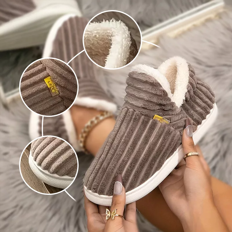 Fluffy plush hugs every inch of your feet, trapping heat inside. Stay comfortable indoors and don't let the cold floors spoil your mood.
