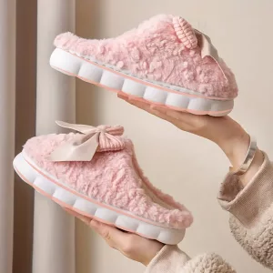 Adorable decorative bows add a playful touch to each pair. Enjoy feeling stylish while staying comfortable indoors.