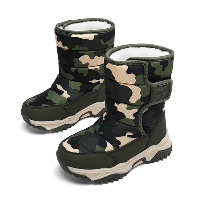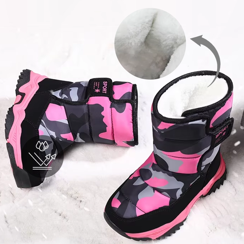 Chunky rubber outsole stops slipping on icy or wet ground. Peace of mind for parents while children run and play outside.