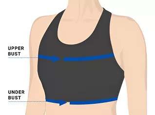 - 3. To measure your upper bust, wrap the measuring tape around your torso, just under your armpits and over the top of your bust.