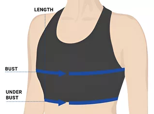 - 3. To find the bust measurement, wrap the measuring tape around the fullest part of your bust. Make sure to keep the measuring tape horizontal. Hold securely, not tightly.