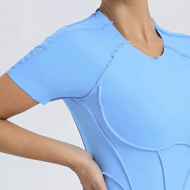 The fabric is soft on my skin and the built-in pads make me feel supported during my dance classes. Love how I look in it!