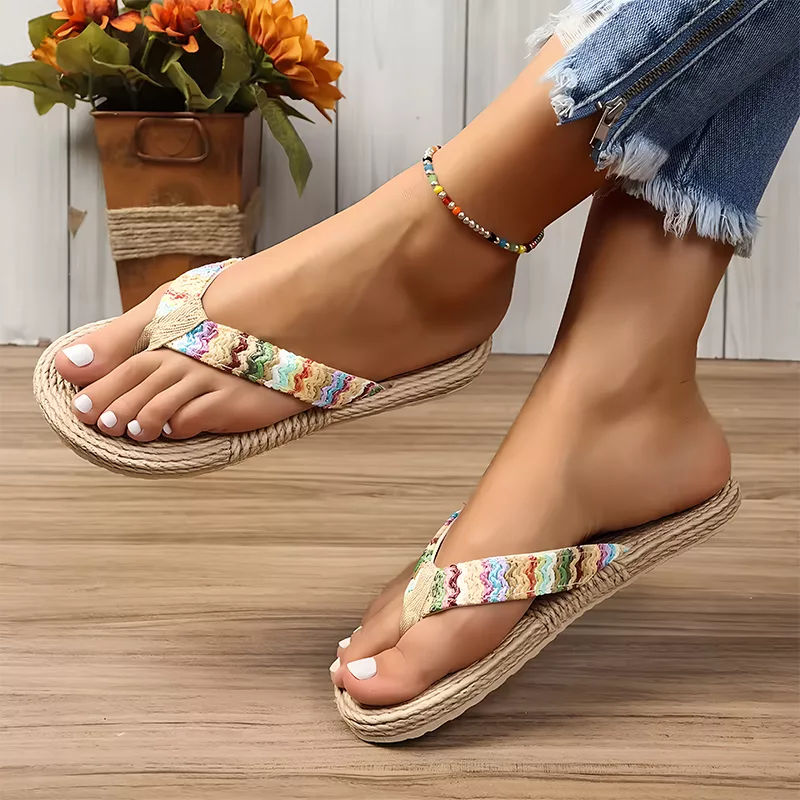 Our flip-flops boast chic Boho style, complementing any summer outfit beautifully. They look great with dresses, shorts, or beachwear.