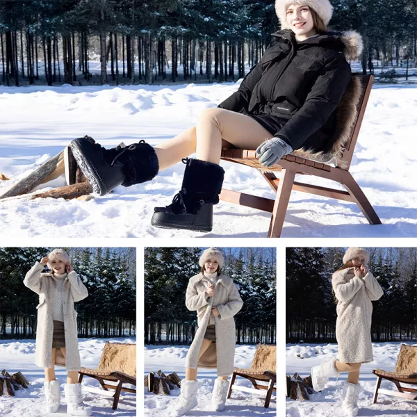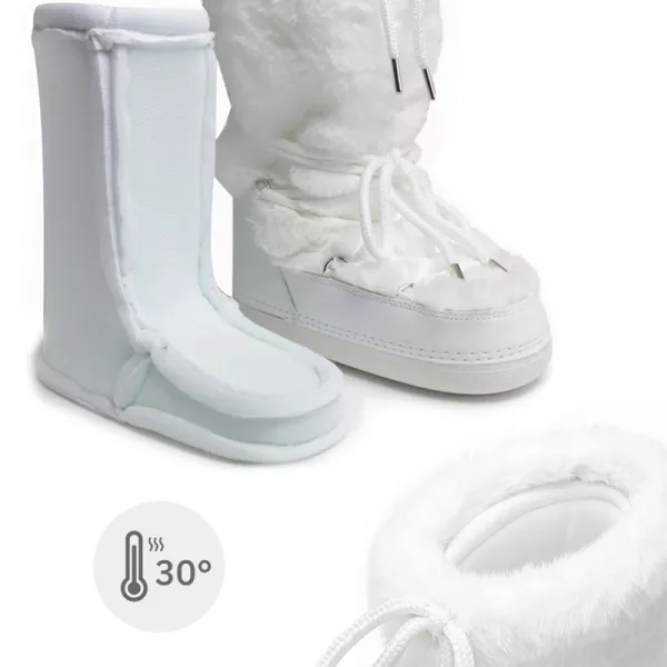 These moon boots kept my feet warm all day, even in deep snow. I wore them to build a snowman and my toes never got cold or wet!