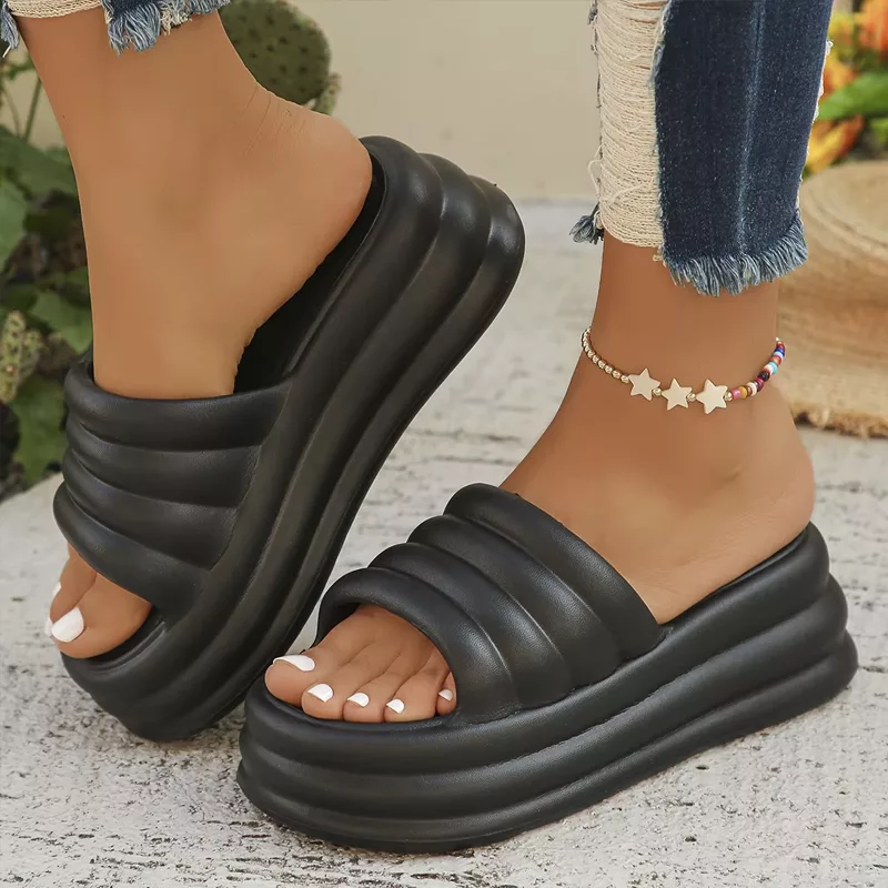 Despite a sturdy design, our platform slippers are not heavy at all. They won't weigh you down as you enjoy outdoor activities.