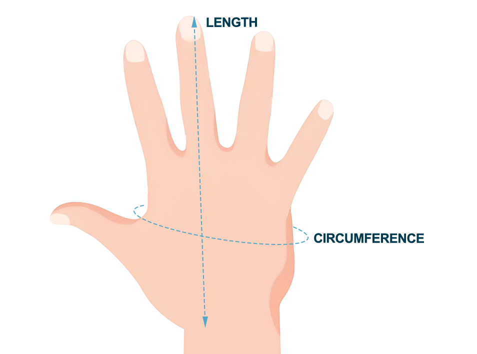 - 2. Wrap the measuring tape around your palm, just below the knuckles.