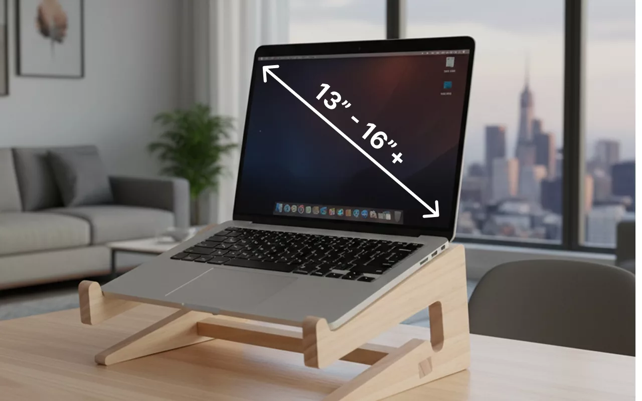 Our wooden holder is compatible with most laptop sizes and keyboard types.