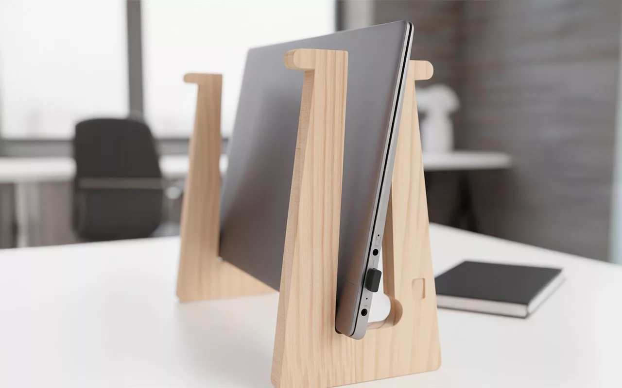Love how the wooden stand keeps my laptop cool. My workspace feels much tidier and my neck doesn’t hurt from looking down so much. Looks great too!