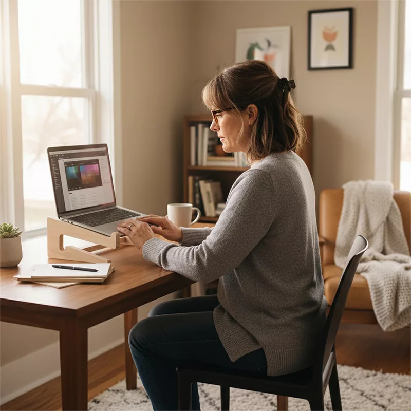 Every morning, I sit by the window with my coffee and laptop on this stand. The wood feels warm and it never slips while typing.